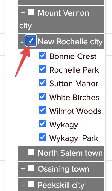 - To select all the zones listed under a specific county, you can simply select the checkbox for that county