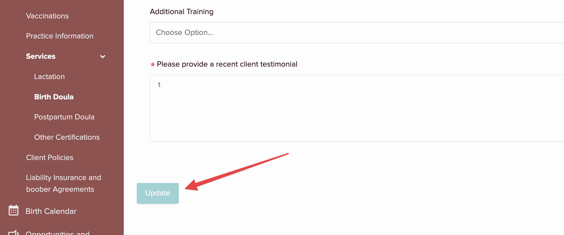 After selecting your counties, zones, and travel fees, click Update to save your preferences.